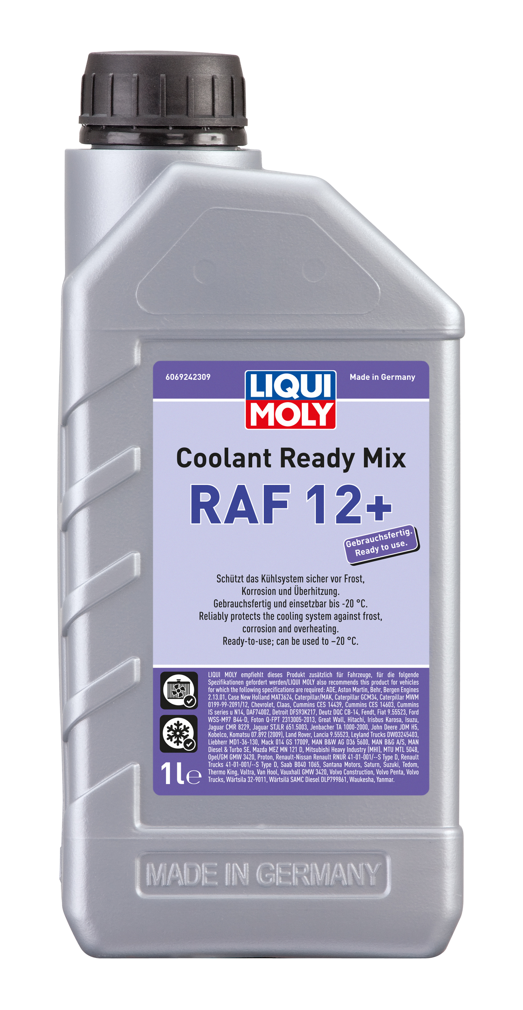 خليط جاهز للاستخدام يعتمد على مادة الإيثيلين جلايكول التي تتميز بمجموعة من المثبطات المعقدة(تقنية الحمض الجامد (OAT))، تم تطويره خصيصًالمحركات الألومنيوم الحديثة عالية الأداء. ولا يحتوي المنتج على الأمينوالنتريت، والفوسفات والسيليكات ويوفر حماية فائقة ضد التجمد والتآكل وفرط السخونة. وذلك يؤدي إلى تشغيل المركبة بشكل موثوق به على مدار العام.