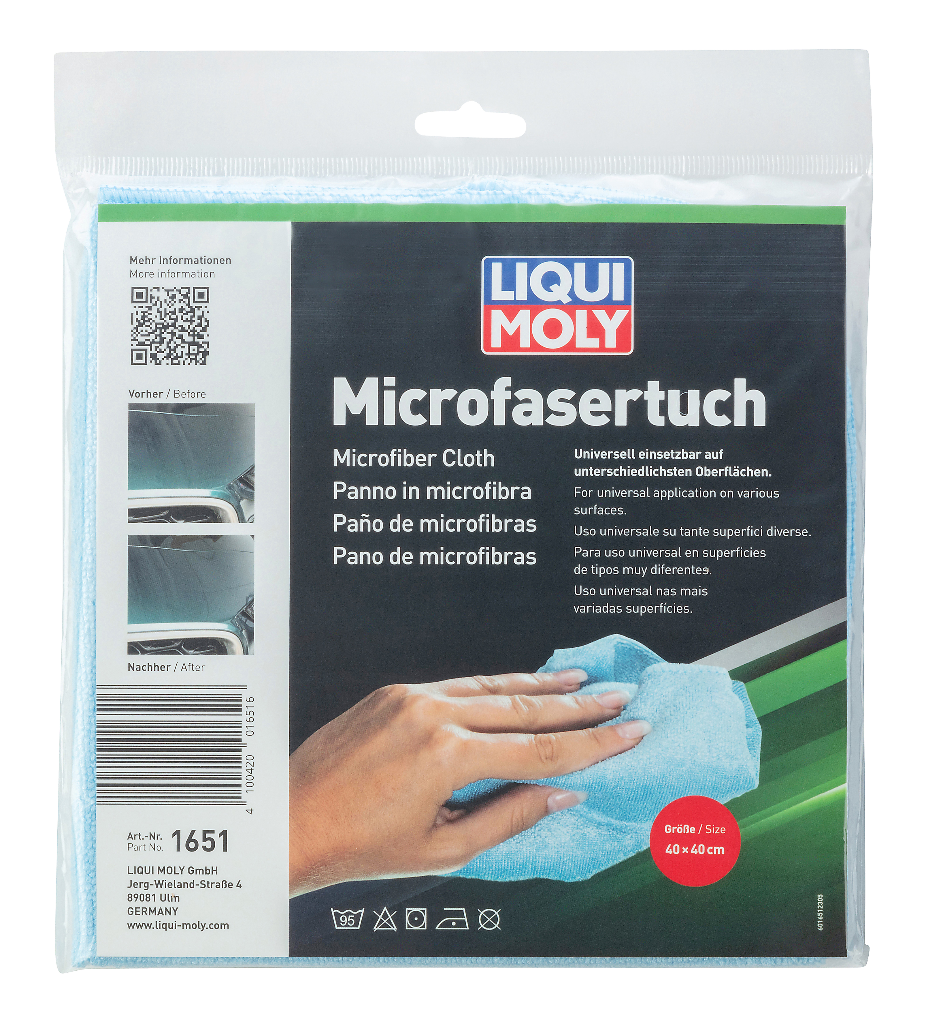 قطعة قماش من الألياف الدقيقة صالحة للاستخدام الشامل لتنظيف كل الأسطح تقريبًا والعناية بها. يضمن لمسة نهائية خالية من الخطوط على المواد الملساء مثل البلاستيك أو الزجاج أو الفولاذ المقاوم للصدأ أو الأسطح الخشبية المطلية بطبقة عازلة. قابل للغسل حتى 95 درجة مئوية بدون استخدام منعم أقمشة.